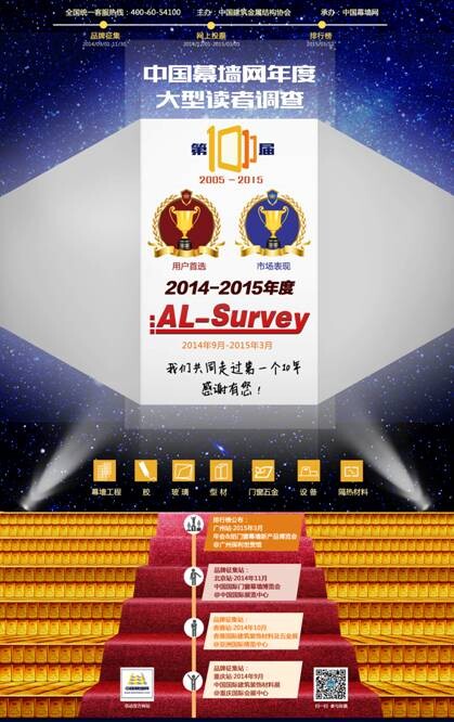 AL-Survey讀者調(diào)查活動(dòng)全稱:中國幕墻網(wǎng)年度大型讀者調(diào)查暨“我最喜愛品牌”評(píng)選活動(dòng)。(以下簡(jiǎn)稱AL-Survey)我司濟(jì)南天辰鋁機(jī)股份有限公司作為門窗幕墻機(jī)械制造領(lǐng)域的資質(zhì)企業(yè),攜“天辰”品牌,強(qiáng)勢(shì)入圍本次調(diào)查活動(dòng)。通過活動(dòng)參與者的票